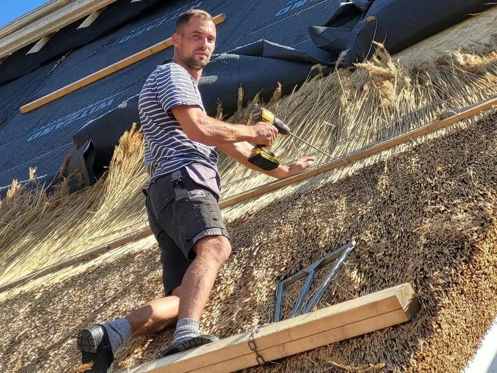 “Ik denk dat ik op de bouw zo’n beetje degene met de lastige planning ben. Rietdekken is weersafhankelijk en we kunnen niet binnen aan het werk, zoals andere partijen. Op regendagen is er dan tijd voor boekhouding, papierwerk, offertes, berekeningen.”